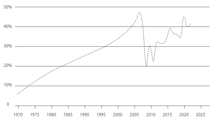 举例,2023年一项针对哈佛大学应届毕业生的打听炫耀,有近半数学生选拔进入金融或督察行业。而据《哈佛深红报》分析,1971年的哈佛大学本科毕业生中,仅有6%进入这两个行业。这一比例在20世纪七八十年代握续高潮,在2007年金融危机前达到了47%的峰值。